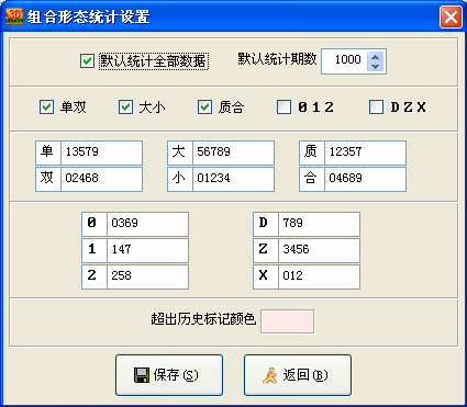 | 通过设置我们可以实现不同的统计需求,我们可以对单双、大小、质合、012、大中小进行重新定义,可以重新定义形态的名称和对应的号码,设置完毕后,该功能将按您的设置进行统计。通过自定义开态的处理,就可以按自己的一些独特的形态分类的组合进行分析统计,十分方便。 | |