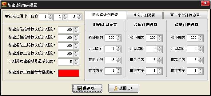 | 打开《博众数字三》产品 ,点击[智能推荐]菜单,点击[包号计划参考],我们可以看到如上界面,该功能可以自定义每期推荐的包号个数,计划的周期及调整内置的推荐方案,使用十分灵活方便。 | |